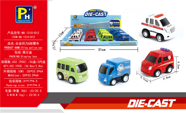 4款合金回力Q版警车(12只/盒)