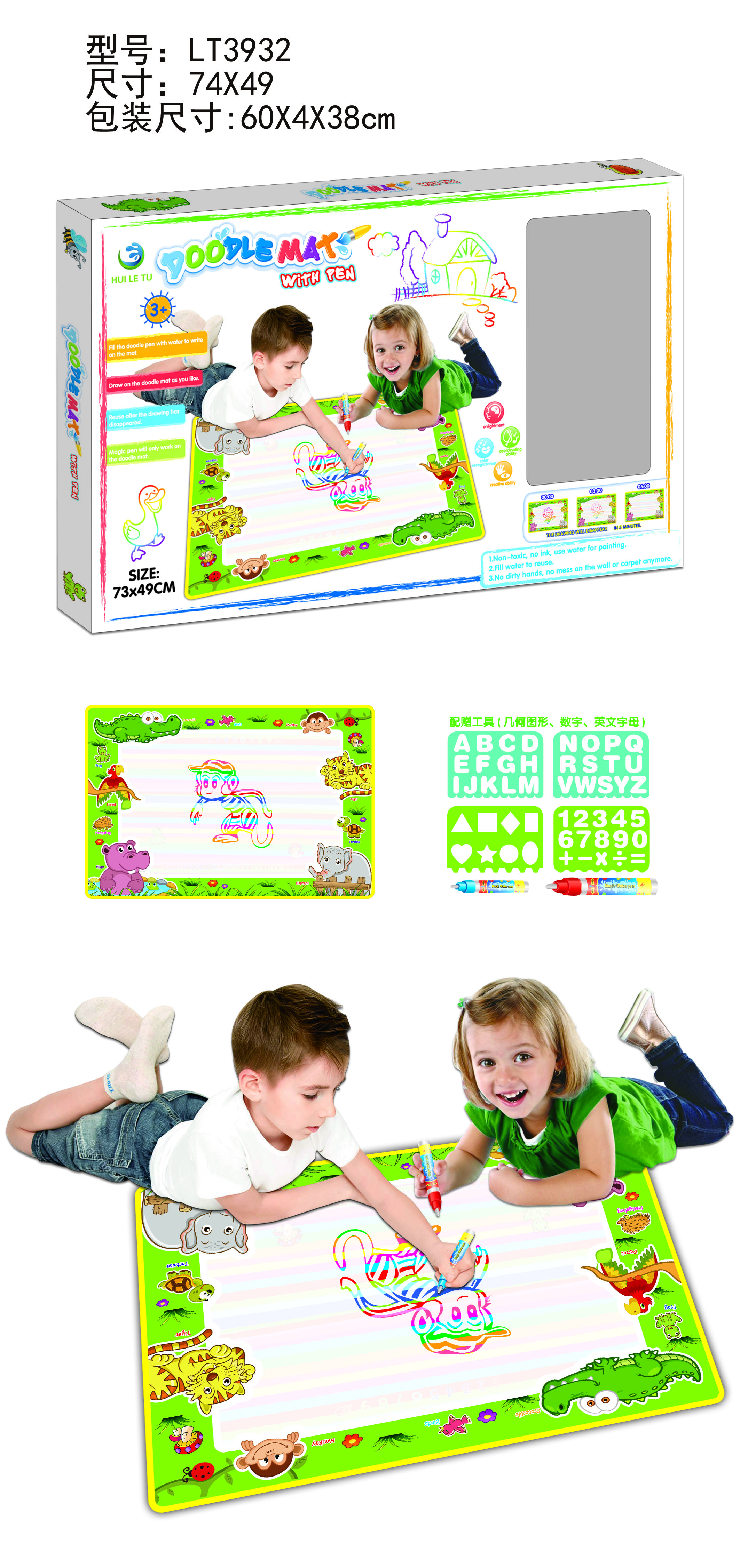 水魔法布毯,布毯尺寸74*49CM含2水笔(一大一小)、配送画图工具(26个字母).说明书