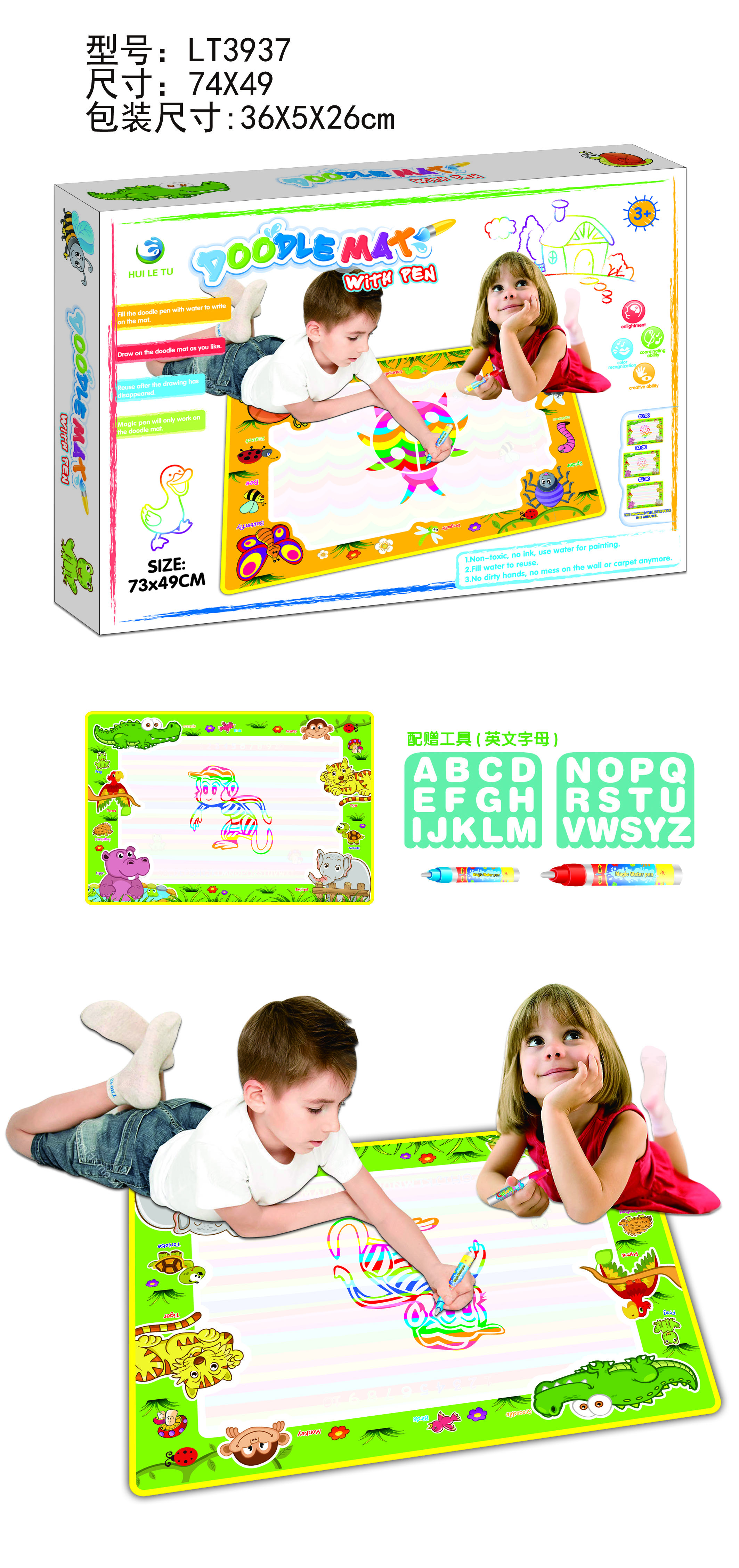 水魔法布毯,布毯尺寸74*49CM含2水笔(一大一小)、配送画图工具(26个字母).说明书