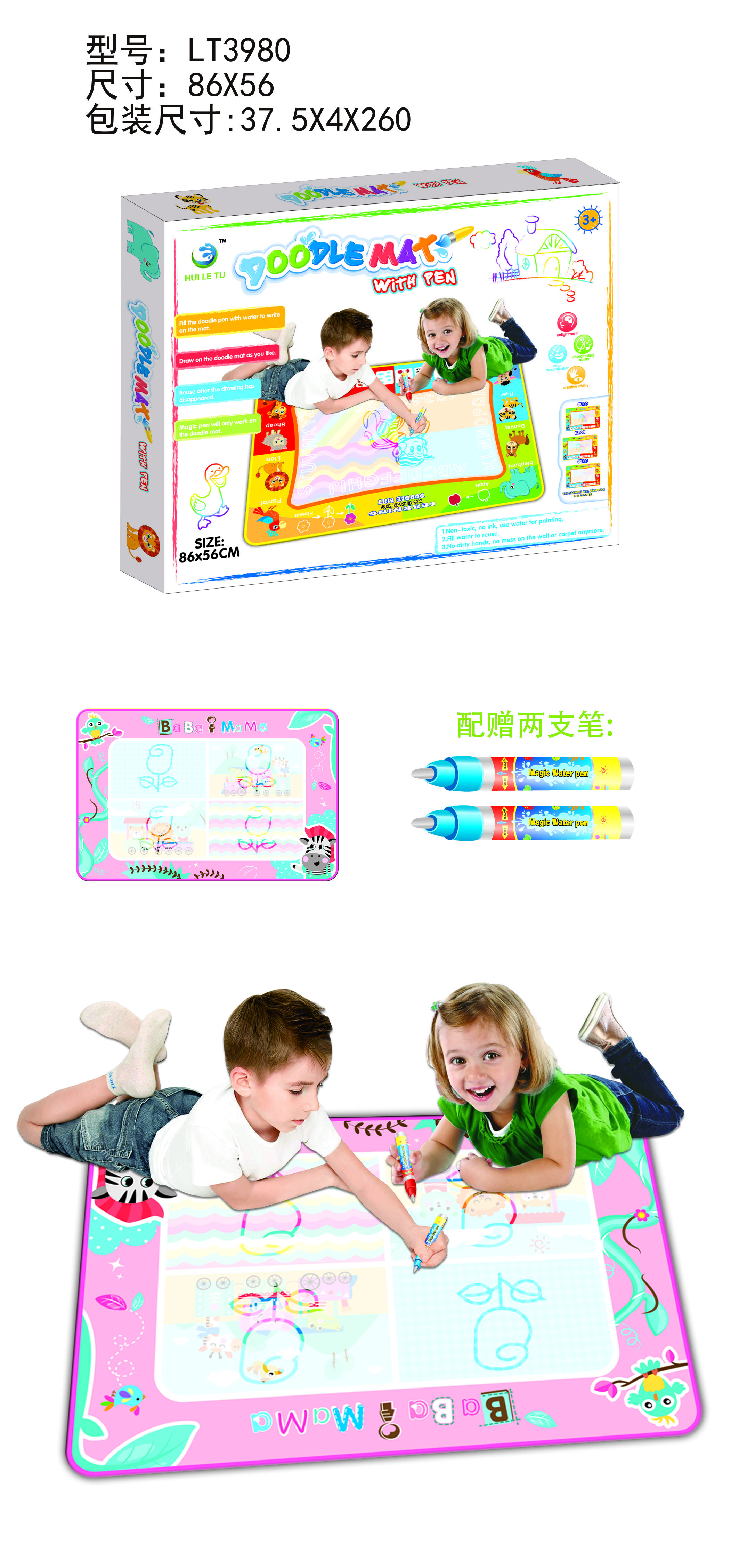 水画毯配2笔,布毯尺寸86*56M(没加海棉)含2水笔(一大一小)